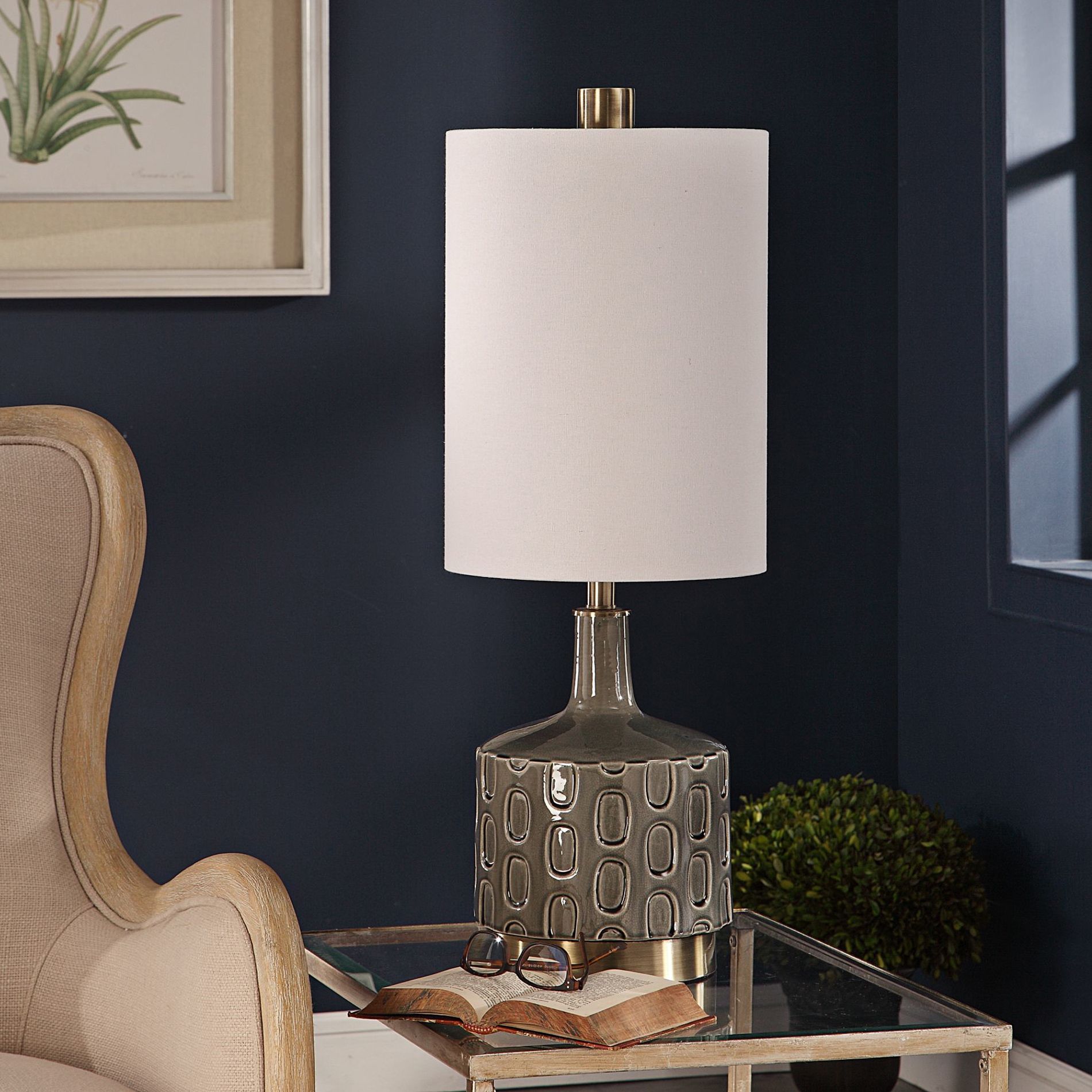 The iconic gräshoppa lamp was first produced in 1947. Celinda blue gray glass table lamp. Enjoy free shipping on most stuff, even big stuff. Wall lights lights for your wall, hall or bathroom. Blue gray urn lamp ceramic table desk night stand with shade gold trim.